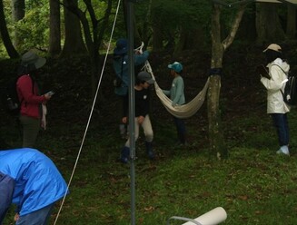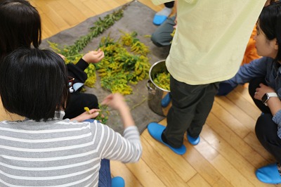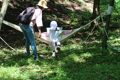 5月23日午前「若葉の季節 自然の中でたたき染めやハンモックなどいろんなもので思いっきり遊ぼう」