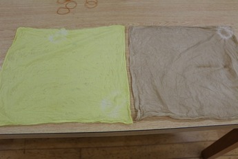 【ハンカチ(天然素材のもの)は豆乳1:水2の液に30分間つけてから干してください(よく染まります)】