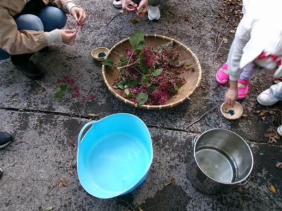 11月7日午後「秋の終わり 自然の中で草木染めやドングリの的あてゲームなどいろんなもので思いっきり遊ぼう」