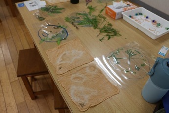 6月13日午後「夏 自然の中で草木染めや虫探し、大きな絵を描くなどいろんなもので思いっきり遊ぼう」