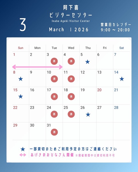 利用希望者は事前に阿下喜ビジターセンター2階観光案内所カウンターで申請ください。