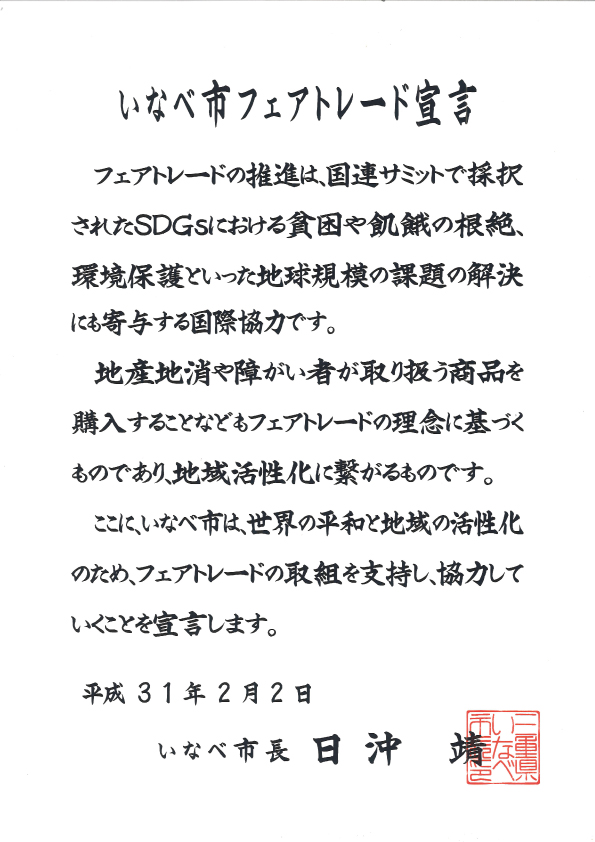 平成31年2月2日に桐林館にてフェアトレードタウン認定の基準6である市長によるフェアトレードの意志表明のイベントが行われました。
