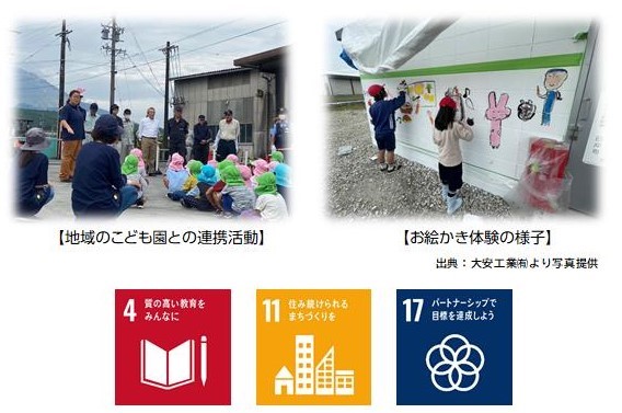 目的は、廃材の利活用だけではありません。地域の子どもたちが、地元企業と連携して活動をすることによる、将来の採用・人材育成の観点からも期待が掛かっています。このような地域とのパートナーシップは、質の高い教育(ゴール4)、住み続けられるまちづくり(ゴール11)、そしてパートナーシップで目標を達成する(ゴール17)という SDGs の観点に合致しています。
