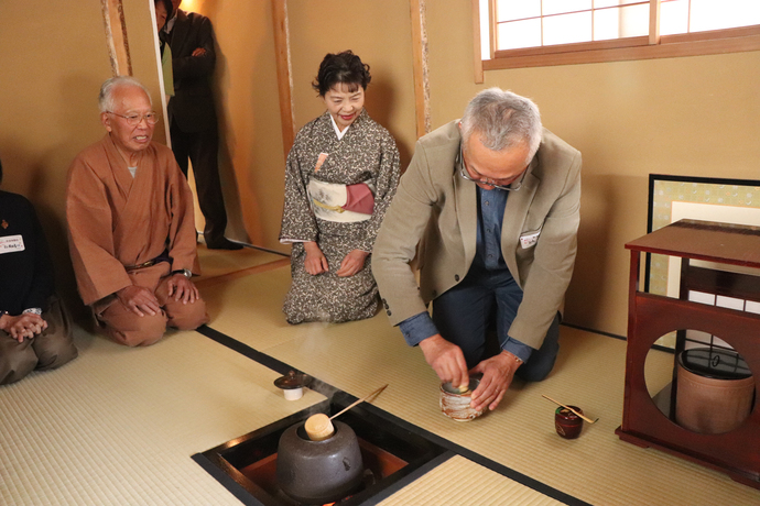 自分で点てたお茶を飲んだ参加者は、「茶室の落ち着いた雰囲気の中、自分でお茶を点て、貴重な体験ができた。」と感想を述べ、楽しい時間を過ごしていただきました。